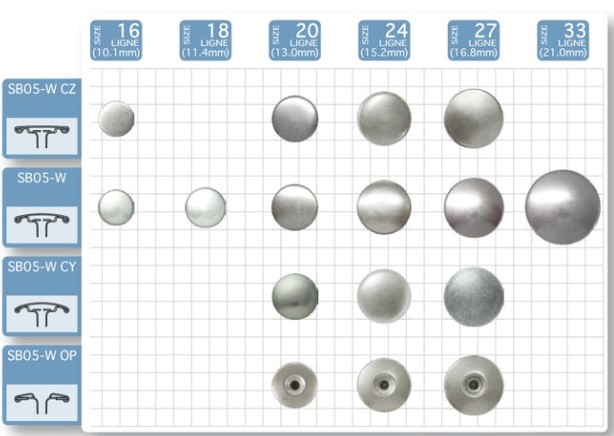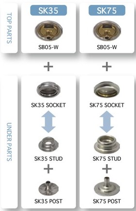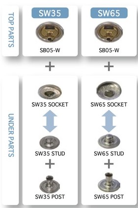 1.SK-環(huán)型彈簧四合扣和SW-S型彈簧四合扣使用同樣的面扣。